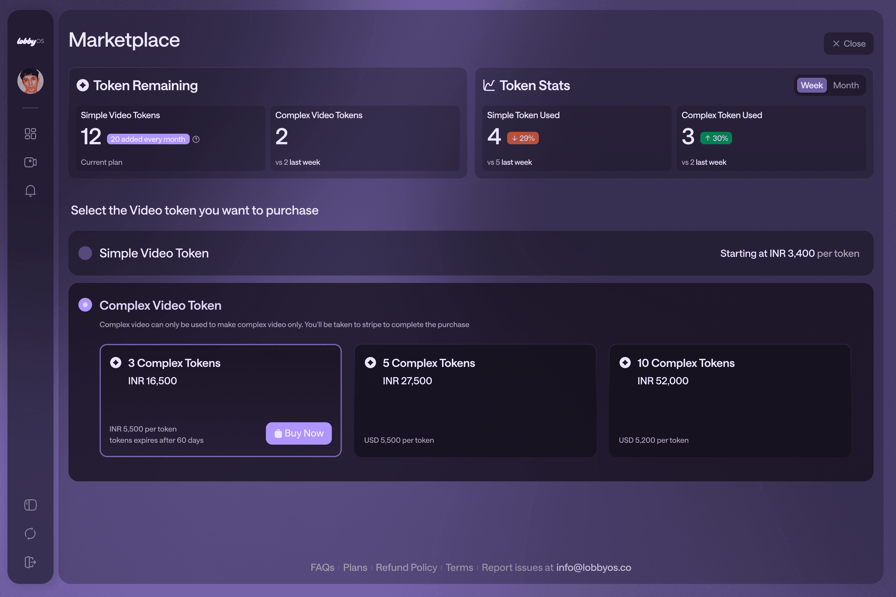 Need more tokens? Visit the Marketplace to instantly purchase Simple and Complex tokens directly from your dashboard.