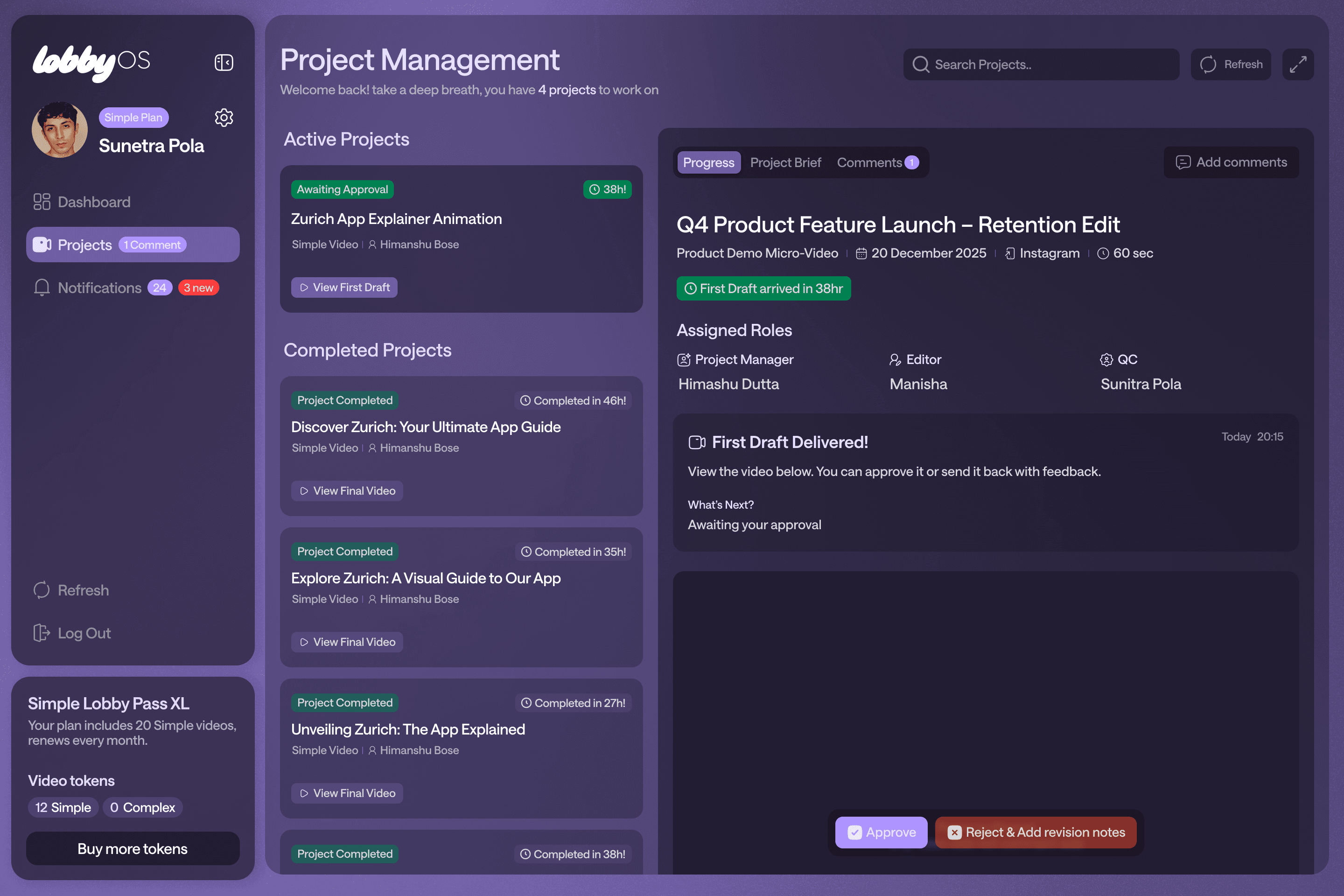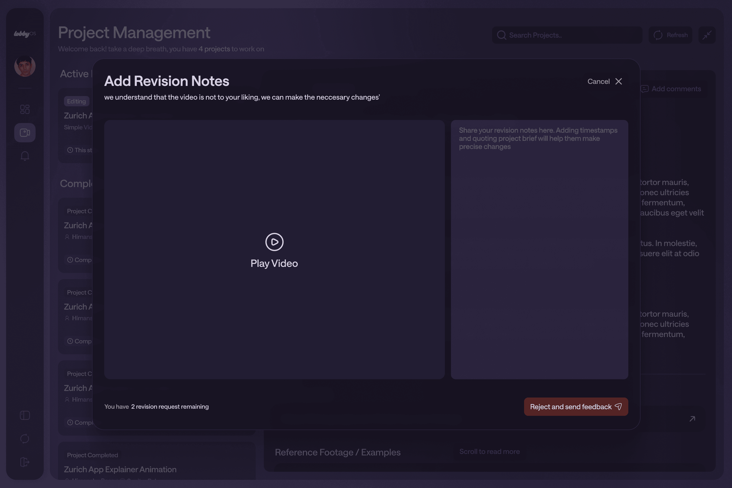Request Revisions – Leave detailed feedback directly in the panel